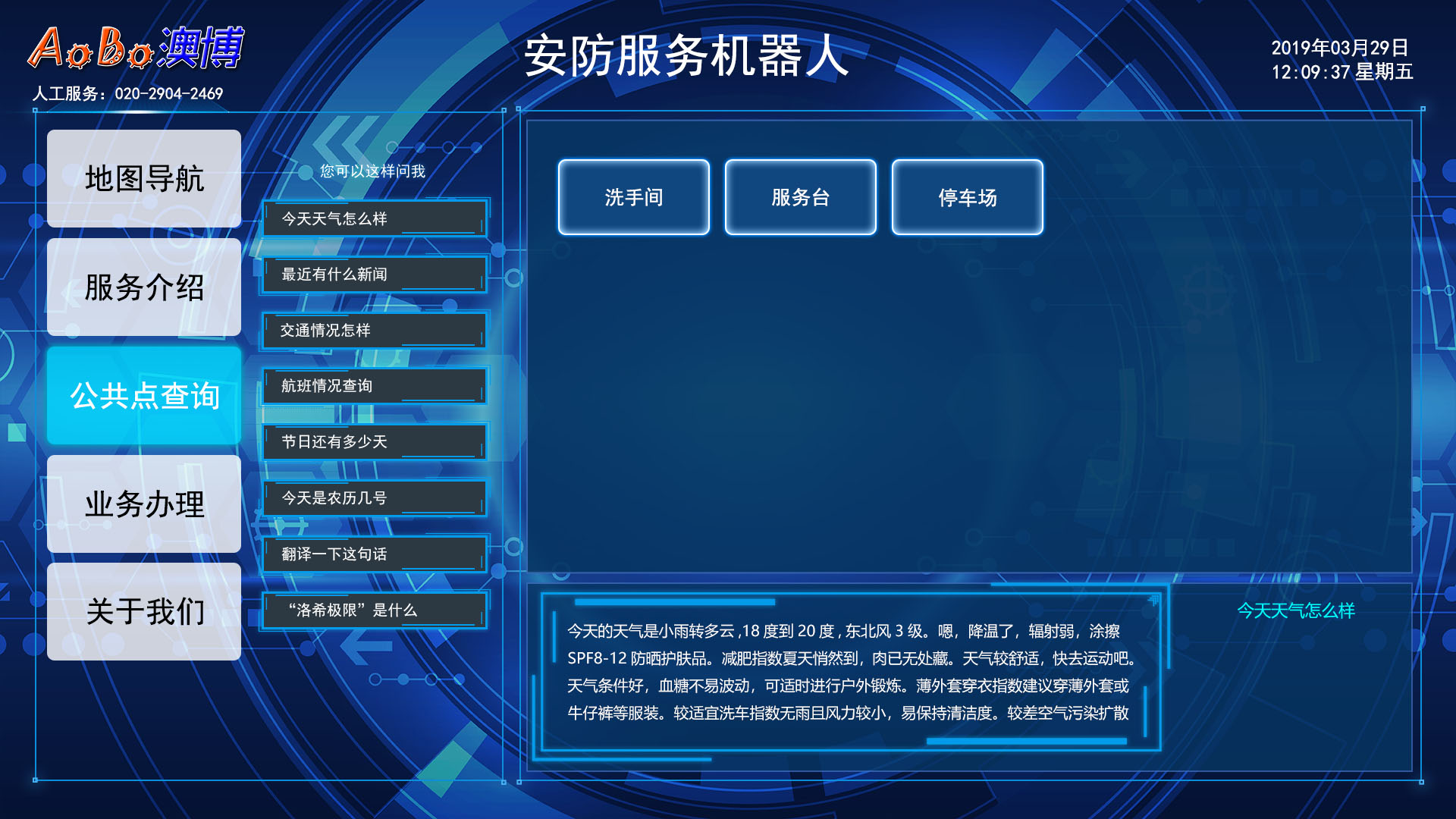 機器人可在巡邏過程中進行廣播通知、引導等,及時提示及警示不文明的行為。