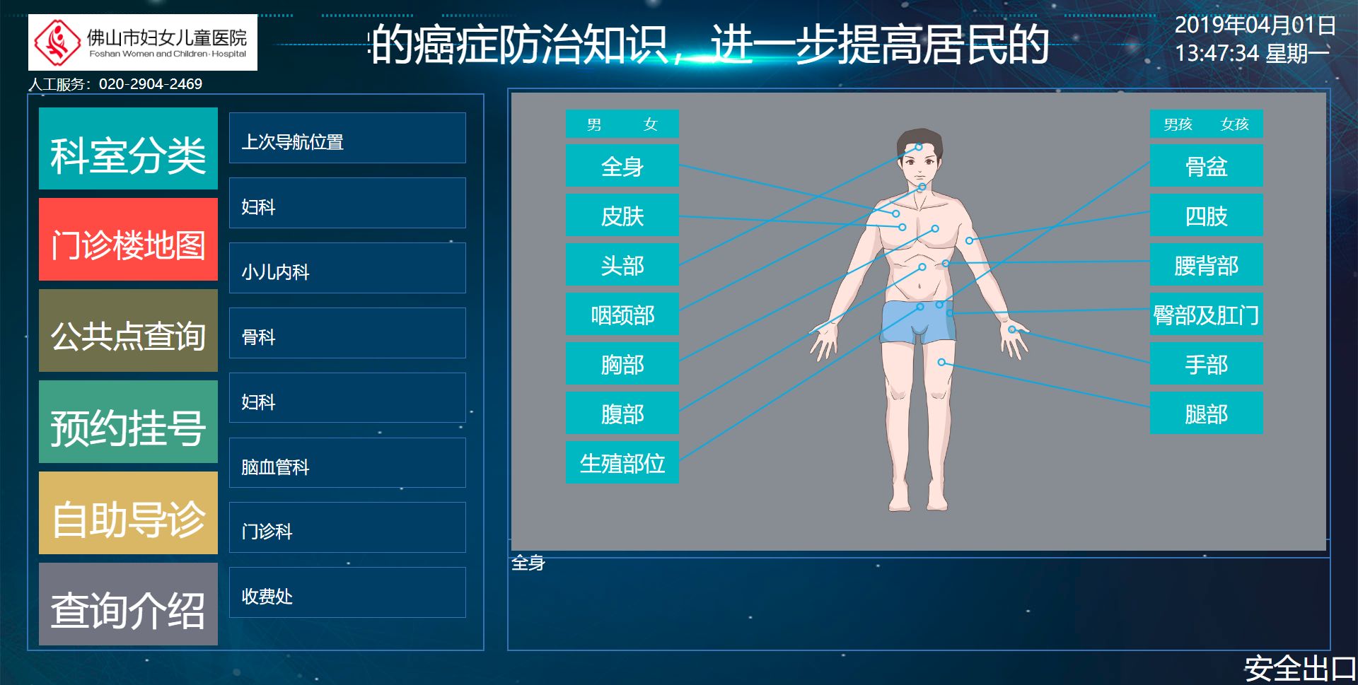 機器人可以根據患者咨詢的科室,通過語音和圖片的形式告知患者,如果該位置在相同樓層,通過室內導航技術患者可以選擇導航引領,機器人會引領患者到具體科室等位置。
