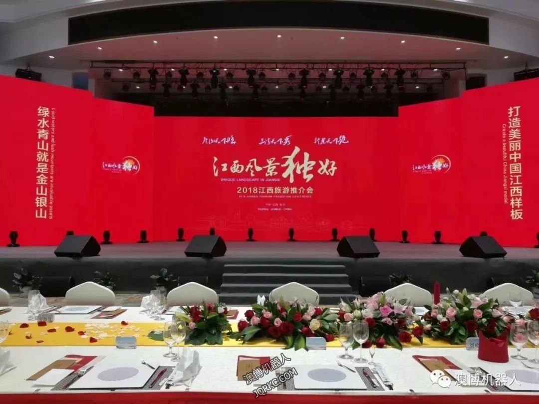 機器人大白亮相2018江西省旅游產業發展大會,作為服務機器人迎賓接待,本次大會由江西省委、省政府主辦,江西省旅游發展委員會、撫州市市委、市政府承辦。副省長吳忠瓊主持會議。