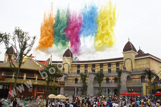 上午十點,園區已經是人頭攢動,隨著主持人的口令響起,一排五顏六色的煙花騰空而起。