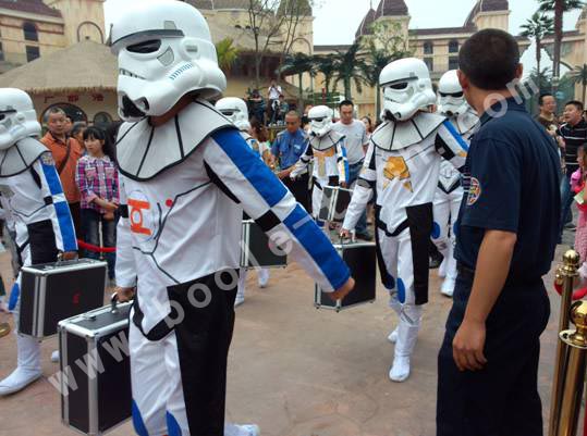 由于地球人類的人多勢眾,最終將“外星入侵者”趕出了地球,取得了地球保衛戰的勝利,隨著“外星BOSS”不甘的發出一聲“我們還會再來的”后星球大戰即告結束。活動結束后,孩子們爭先恐后的和外星戰士合影留念,高科技的表演讓孩子們仿佛置身于夢幻的星際現場,使他們度過了一個特別的兒童節。
