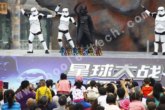 他們手持水槍,發起了對地面的人群發起攻擊,《星球大戰》由此拉開大幕。而孩子們也不甘示弱,他們也拿上自己的最新武器——水槍,勇敢的進行反擊。