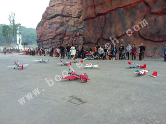 隨后無人戰機編隊從地球村大門飛臨游客們的頭頂,在上方盤旋飛舞,做出各種特技飛行,引起孩子們一陣陣的驚嘆。
