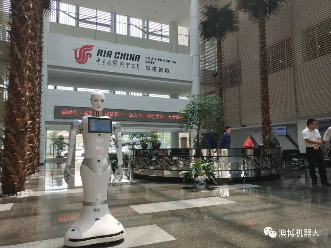 圖為澳博服務機器人小澳在白云機場國航大廈使用